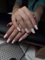 Выполнено : Комбинированный маникюр, снятие аппаратное, укрепление акригелем, покрытие гель-лак, наращивание 1го ноготочка.